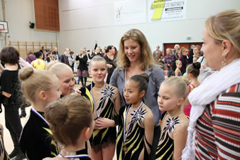 Kultasiipien pallo-ohjelman koreografia sai paljon positiivista palautetta, kiitokset siitä koreografian laatineelle Vera Ziminalle! Valmennustiimi Terhi Neuvonen, Julia Romanyuk ja Minna Karhu olivat erittäin ilahtuneita erityisesti siitä, että tytöt nauttivat ja iloitsivat esiintymisestään kilpailussa. Molempien joukkueiden suoritukset vastasivat heidän tämän hetkistä taitotasoaan ja valmentajat olivatkin tyytyväisiä kilpailusuoritusten kokonaisuuteen, vaikka ohjelmissa tapahtui vielä paljon virheitä. Hyvien sijoitusten lisäksi nuoret voimistelijat saivat onnistumisen elämyksiä ja tärkeää kilpailukokemusta. Tästä on hyvä jatkaa harjoittelua. Seuraava rytmisen voimistelun kilpailu käydään 3. – 4.marraskuuta kun sisarseuramme Elise järjestää perinteiset Minirytmiset Helsingissä.