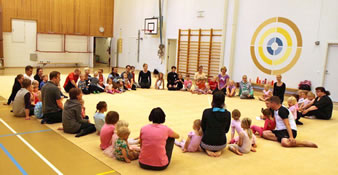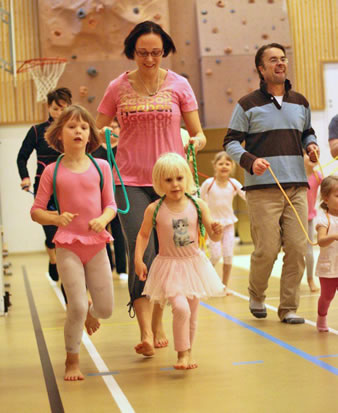 Syysloman kynnyksellä otettiin koko perhe mukaan jumppaan ja näytettiin, mitä on opittu alkusyksyn aikana. Tytöt näyttivät ylpeinä mallia äideille, isille ja sisaruksille. Yhteisissä harjoituksissa oli haastetta vanhemmillekin!