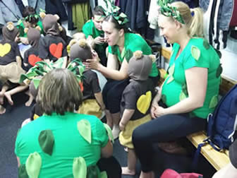 Perheliikuntaryhmän esitys ”Pikkukarhut” hurmasi koko jäähallin. Ohjelma oli alun perin Elisen ja Elise - Vantaan 2013 Viidakkokirja joulunäytöksestä.”Yksi voimistelugaalan teemoista oli kierrätys, joten pikkukarhujen esiintymishousujen lisäksi siis kierrätin myös koreografian”, ohjelman koreografian laatinut Jonna Clancy naurahtaa.