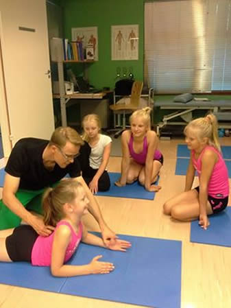 Yhteistyö Hakunilassa sijaitsevan Fysioterapia Kropan kanssa käynnistyi näin hiljalleen viime keväänä rytmisen voimistelun valmennusryhmä Hopeatähtien lihastasapianokartoitusten merkeissä.